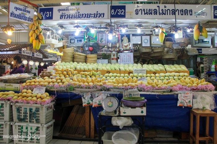 Or Tor Kor Market is well-known among food bloggers and tourists for its cleanliness and carefully selected high-quality food. It was ranked by CNN as one of the top 10 fresh markets in the world. At Or Tor Kor, you can find all kinds of Thai products like fruits, seafood, vegetables, and prepared foods like somtam, roasted pork, grilled meats... to various pastries, spices, and dried goods. If you're looking for perfectly ripe golden mangoes without a scratch on the skin, firm and juicy, Or Tor Kor is the place to be. Most prices here are higher than elsewhere, but the quality is definitely worth the money you spend.