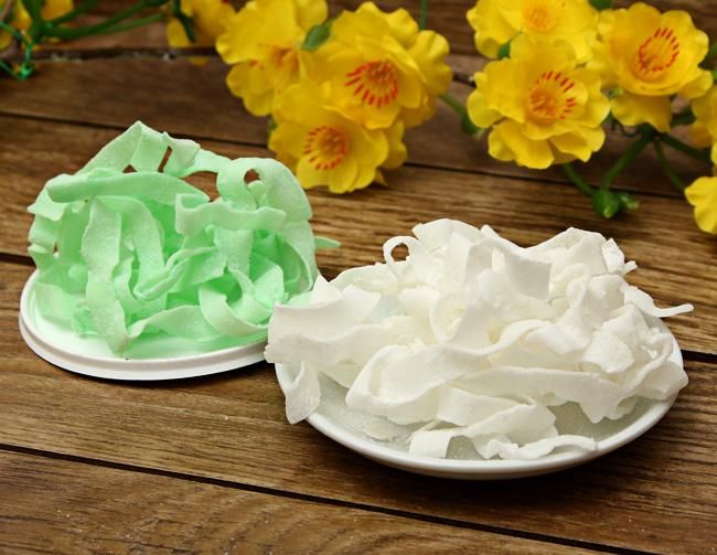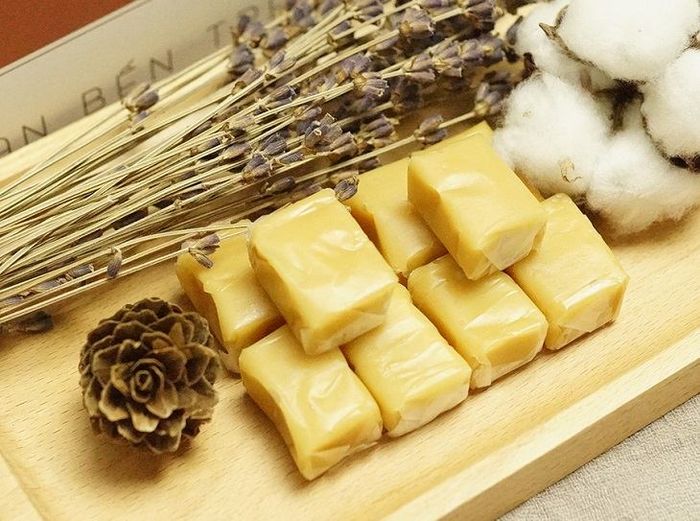 Ben Tre coconut candies are made in various flavors to cater to a wide range of preferences, such as durian, chocolate, cocoa, and peanut fillings. Many people love the pandan-flavored coconut candy, which has a subtle aroma, while the striped and green-white versions with pandan flavor are visually appealing. This type of candy is sought after by both domestic and international tourists. The price for a box of these coconut candies typically averages around 50,000 VND.