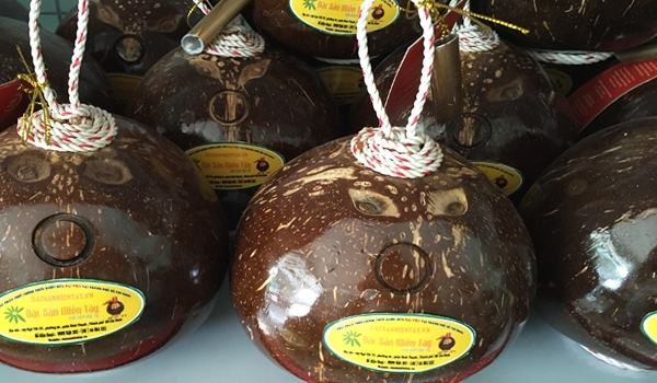 Aside from its distinctive taste, this coconut wine is also known for its health benefits, promoting digestion and enhancing skin health. With its rustic packaging and sweet coconut aroma, it makes a wonderful gift for friends and family. A 500ml bottle of this unique drink is priced around 85,000 VND.