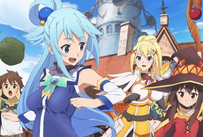 KonoSuba is one of Japan's most famous isekai anime franchises. The story revolves around Kazuma Satou, who is transported to a fantasy world featuring MMORPG elements. He forms an unusual adventuring party with a goddess, a powerful mage, and a crusader. Although Kazuma is granted a special item or ability for this new world, he chooses to bring Aqua along, only to discover her lack of competence. Aqua cannot return to the afterlife until the Demon King is defeated, so the two of them form a team and recruit two more members: Megumin, a mage obsessed with explosions, and Darkness, a masochistic crusader.