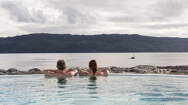Portavadie is a popular resort located on the west coast of Scotland. Its large outdoor heated pools attract numerous visitors looking for a relaxing getaway. What makes these pools unique is their proximity to the natural Loch Fyne lake. Here, guests not only enjoy a warm soak in the hot tubs but also take in the breathtaking surrounding scenery. The modern spa resort is located right at the doorstep, offering dog-friendly cottages, luxurious apartments, and eco-friendly lakeside lodges.