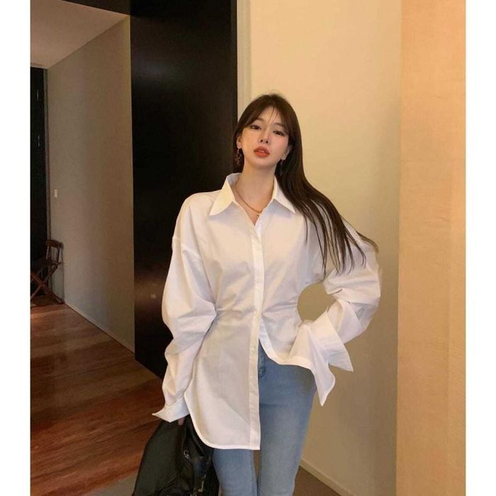 Unlike fitted shirts that hug the body and accentuate curves, the oversized shirt gives a cute, relaxed vibe while also helping to conceal any imperfections. Pair it with shorts or jeans for a comfortable, breezy look—especially perfect for hot summer days.