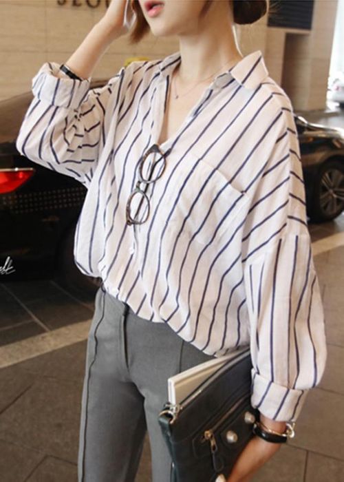 The blazer-style collar, often found on blazers, adds a touch of formality, but this spring and summer, you'll see stylish women from Korea embracing the shirt with a two-flap collar similar to a blazer. That's why it's referred to as a blazer-inspired shirt.