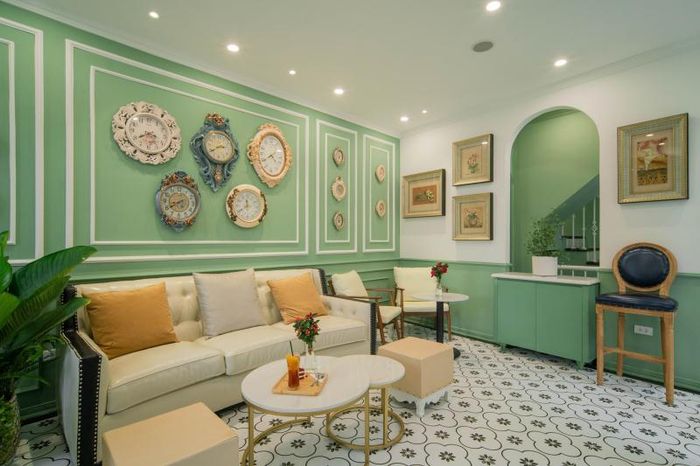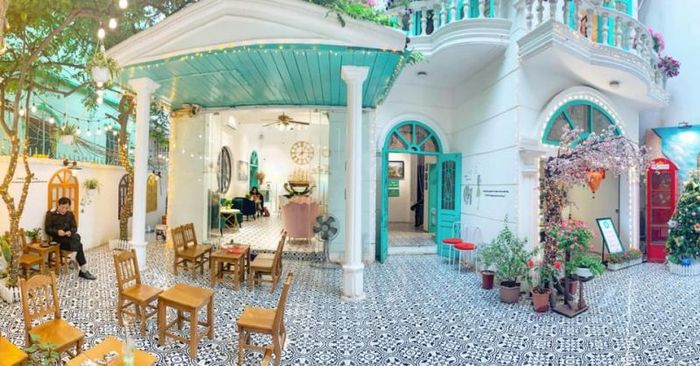 The design of Timeline Coffee is unique in itself. The first floor transports you to a classy European setting, rich with European-style aesthetics. The second floor brings you back to the era of the subsidy period, with a mysterious Tarot reading corner. On the rooftop, you'll find beautiful photo opportunities with walls that evoke the vibe of Da Lat. The villa is surrounded by flowers, and the overall aesthetic is soft and harmonious, from the white-and-blue color scheme to the intricate décor and attention to detail.