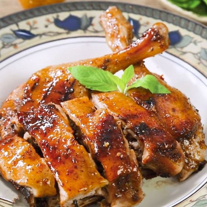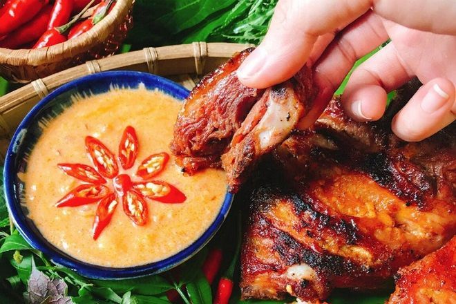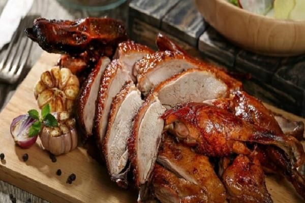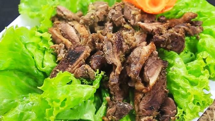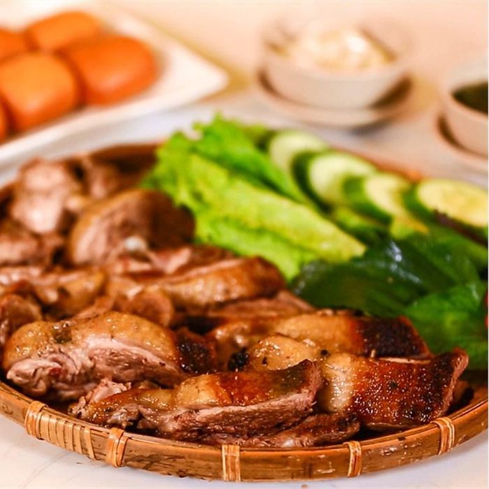 - Step 3: Roasting the duck: To roast duck, you can use an oven, a grill, or roast directly over charcoal. Among these methods, roasting over charcoal is the technique that brings out the most characteristic fragrant flavor. While marinating the duck, prepare the charcoal for roasting. After 30 minutes of marinating, place the duck on the grill and roast over charcoal for about 30 minutes until the duck is evenly cooked. During the roasting process, occasionally brush the remaining marinade and a little cooking oil onto the duck to prevent it from drying out and burning. Rotate the duck regularly to ensure it cooks evenly and develops an attractive color. After roasting, let the duck cool, then cut it into bite-sized pieces, arrange on a plate, and garnish with fresh herbs and sliced chilies.