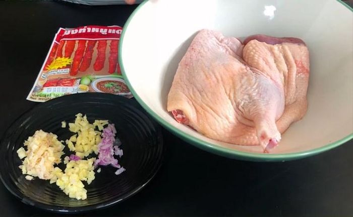 - Peel and crush 5 cloves of garlic, 5 shallots in a large bowl. Then, add 1 tablespoon soy sauce, 1 tablespoon oyster sauce, 1/4 teaspoon salt, 1 tablespoon chicken powder, 2 tablespoons sugar, 1/3 teaspoon pepper, 1/4 teaspoon msg, 1 tablespoon chili powder, 1/2 teaspoon five-spice powder and mix well.