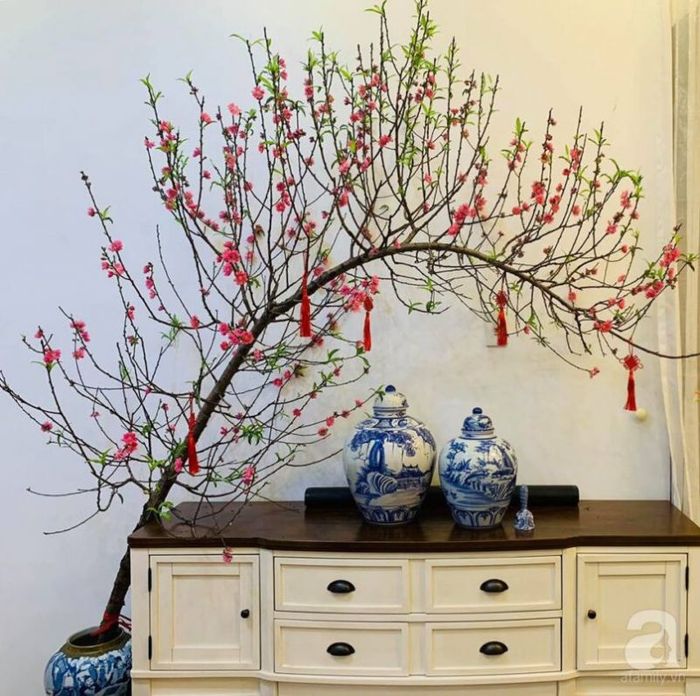 If your peach blossoms are not opening just a day or two before the New Year, you can cut the stems and briefly scorch the cut ends over an open flame or hot charcoal. Be careful not to burn the stems. Then place the peach branch in a vase and change the water daily.