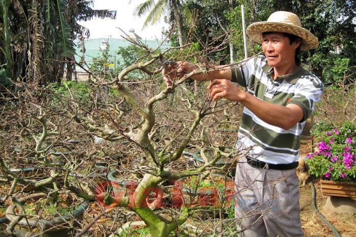 To make sure your flowers bloom right for Tết, you need to time the leaf stripping, branch pruning, and bud removal correctly. For peach and apricot blossoms, it’s ideal to strip the leaves two months before the Lunar New Year. The exact timing for leaf stripping depends on factors like leap years, weather, and the plant’s growth cycle. Be careful when doing it by hand to avoid damaging the part of the leaf attached to the branch, as this could harm the flower buds.