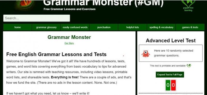 Grammarly Monster is a professional English grammar learning website. Through easy-to-understand materials and lessons, it helps learners master and improve their grammar skills. Grammarly Monster provides detailed lectures and explanations on English grammar concepts. This website explains grammar rules and principles clearly, from basic to complex. You can learn about types of words, sentence structures, tenses, clauses, adverbs, and many other grammar concepts.