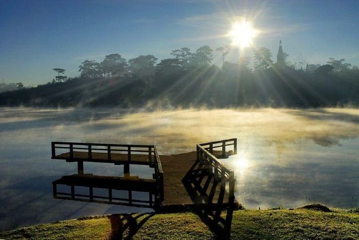 The 'Lover's Bridge' is a small Y-shaped bridge located by the picturesque Xuan Huong Lake. While not particularly extraordinary, its unique mid-air position makes it a favorite spot for tourists to take memorable photos. Standing on the bridge, closing your eyes, and letting your spirit drift over the serene waters, with gentle ripples like soft waves, it's as if you're in a dreamlike theater, listening to a soothing and harmonious melody.