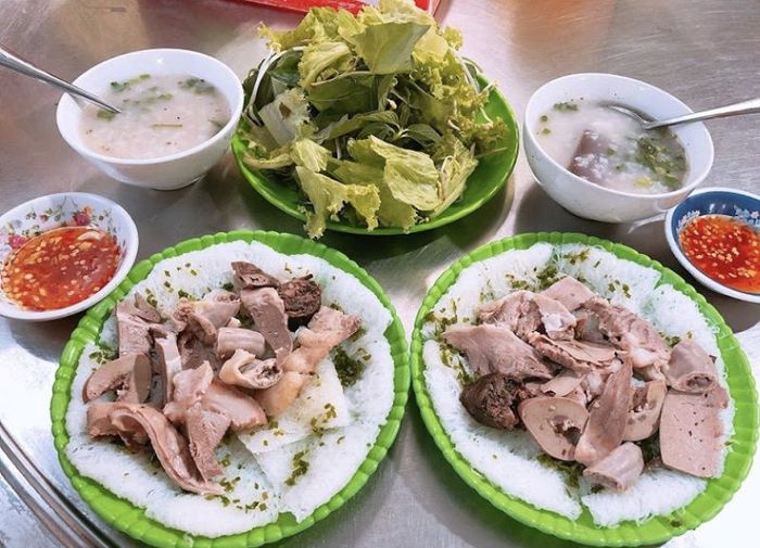 The pork offal rice noodle here has a completely different flavor from other regions. The rice noodles are soft, smooth, and fragrant with the smell of onions. The pork offal is carefully processed, looking very white and clean, crispy when eaten, not tough, dipped in fish sauce, added with a piece of rice noodle is indeed a perfect combination.