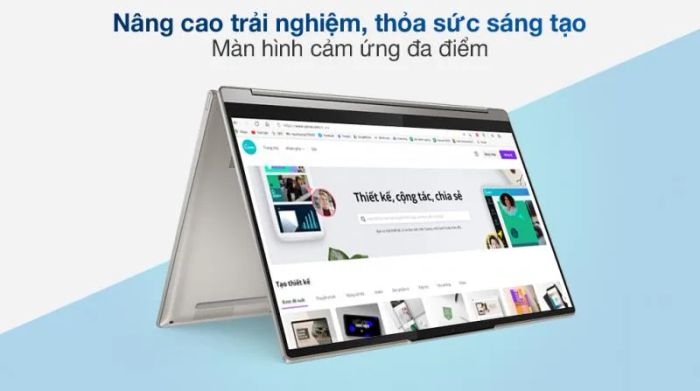 Elegant, premium, and powerful—these words perfectly describe the value of the Lenovo Yoga 9 14ITL5 (82BG006EVN). If you’re in search of a lightweight, versatile laptop with impressive specs for heavy tasks, this high-end version from Lenovo is your ideal choice. The Lenovo Yoga 9 14ITL5 boasts an eye-catching design, only 15.7 mm thick, and weighs just 1.37 kg, making it easy to carry as a personal companion. Its sleek metal body and modern colors reflect the sophistication and luxury of a business-class laptop. The soft-edged corners and flexible hinge allow for a 360-degree rotation, giving you the freedom to use the laptop in any position.
