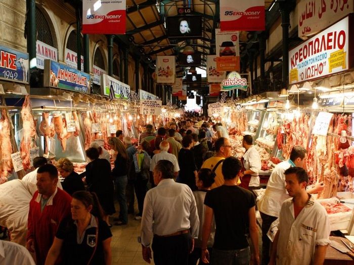 Varvakios Agora Market is the top public market in Athens, bustling with locals and tourists alike. Beyond fresh seafood, you'll find artisanal cheeses, butcher stalls, and olive oil stands. If hunger strikes while strolling the market, don't hesitate to indulge in a light meal or sip on some delicious aperitif or ouzo. Here, you'll discover the freshest seafood caught in the nearby Aegean Sea, along with Mediterranean specialties like fresh cheese, olives, fruits, and lamb. Visiting Varvakios Agora provides the opportunity to witness the finest catches, directly sourced from the nearby Aegean Sea, and freshly pressed olive oil using traditional methods.