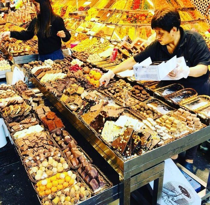 Visiting Barcelona without exploring La Boqueria Market, the city's most famous market, would make your trip incomplete. In this vibrant market filled with colorful stalls, piles of fresh fruits, abundant seafood, and hanging chorizo sausages, you can buy a bag of sliced Jamon ham thigh to savor while strolling through the market. For the patient ones, wait in line at Bar Pinotxo; a small eatery with only 14 seats but serving the best tapas in the city. Located to the right of the bustling La Rambla street, the vibrant metal gate of Boqueria will lead you into a world of diverse and colorful foods. Influenced by the Mediterranean climate, the market offers a wide variety of local specialties such as olives, seafood, fruits, smoked meats, and various cheeses.