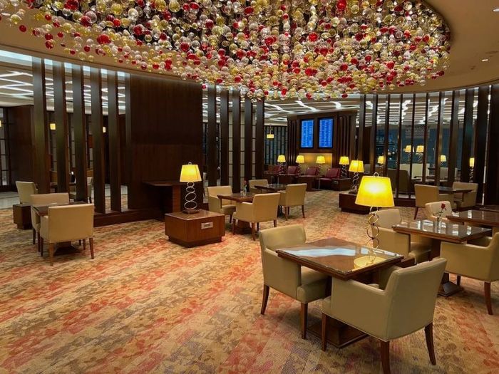 The CIP Lounge is spacious, divided into several sections, which allows for an airy and well-lit environment. Despite being a busy lounge with a capacity of 2,000 passengers daily, the layout ensures that quieter corners are easily found. The lounge offers plenty of comfortable seating and lockers, so passengers don’t have to worry about carrying their hand luggage from one area to another. Some seating areas overlook the terminal through large windows, and the lounge also features a number of private curtained daybeds for relaxation.