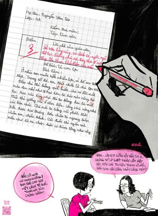 Readers will laugh out loud when they see the father who raises pigs but refuses to let his child eat pork, or the vegetable seller who warns her child, 'Eating vegetables will kill you!' The boy's teacher, instead of understanding the meaning behind his naive essay, simply writes, 'Needs more sample references'. All these elements come together to form a humorous caricature of the everyday issues faced by modern Vietnamese society.