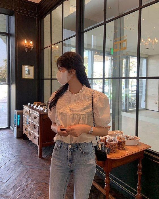 Blouses come in various styles like off-shoulder, bell sleeves, etc. They also come in various colors like white, beige, pink, adding to the feminine touch. This is an item that can accompany girls to school, work, or outings. One of the simple yet beautiful ways to style a blouse is to pair it with jeans. When paired with jeans, you have a youthful and classy outfit suitable for any occasion. Whether it's wide-leg or skinny jeans, worn with high heels or sneakers, you'll look incredibly attractive!