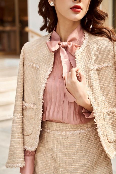 The compact design helps your figure look fantastic with excellent leg elongation ability. Short tweed designs are often chosen by petite women. Mix them with high-waisted skirts or similar cocktail dresses for a tone-on-tone look.