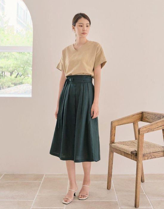 Maxi skirts are skirts with a medium length from the knee to about 5-10cm above the ankle. This type of skirt comes in various styles, including the vintage style. Maxi skirts already evoke a sense of gentleness and femininity, but when designed in a vintage style, they become even more delicate and feminine, with a touch of retro charm.