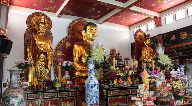 Prayer for Wealth, Fortune, and Peace at Tam Bao Temple (Buddha Treasure, Dharma Treasure, Sangha Treasure) on the first day
