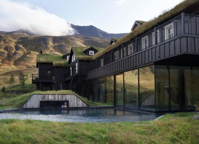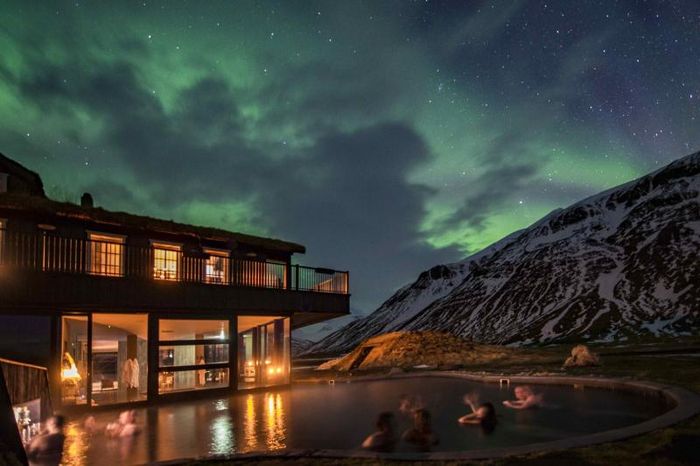 The stunning natural beauty of Iceland's remote Troll Peninsula is matched by the luxury of its most rustic hotels. Nestled on the breathtaking Troll Peninsula in northern Iceland, this is one of the coziest boutique retreats. Formerly a home to an Icelandic sheepfold, the luxurious Deplar Farm Hotel and its rooftop disguised in grass conceal rows of snug rooms, stylish spa, dining area, and recreational space, all with views of the surrounding snow-capped peaks and vast wilderness.