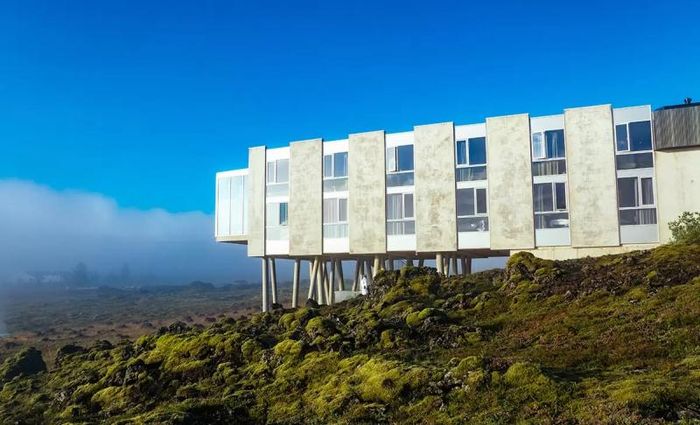 An abandoned building was purchased back in 2011 and with the support of the Santa Monica-based design studio Minarc, it underwent a transformation. The new elements of the structure were built using a timber construction system that exceeds environmental safety standards. Perched atop a series of columns, the hotel's location juts out from the flank of Mount Hengill. The glass and concrete facade of ION Adventure emerges amidst Iceland's rugged landscape like a piece from a sci-fi tale.