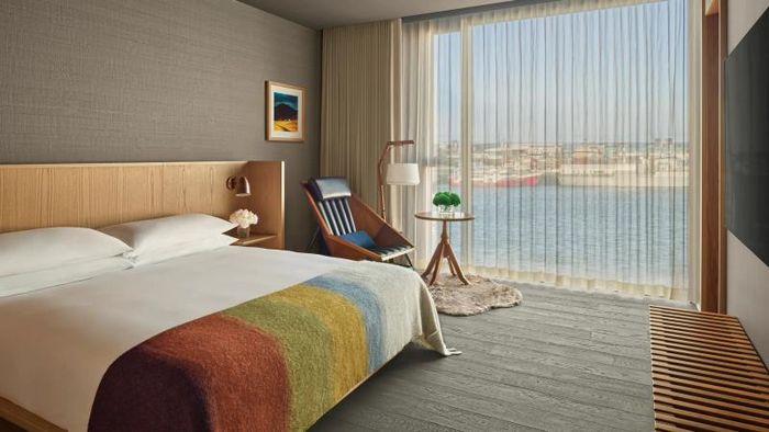 Reykjavik Edition Hotel seamlessly blends with neighboring residential buildings and is cleverly designed to maximize views of the harbor and surrounding mountains. Rooms start with clean, minimalist foundations of concrete, muted charcoal hues, and grey oak wood. Inside the hotel comes alive with faux fur throws, custom Italian furniture, Le Labo toiletries crafted with exclusive scents of Reykjavik Edition, a minibar stocked with colorful local treats like artisanal chocolate bars, and irresistibly cozy throws woven by local wool manufacturers.