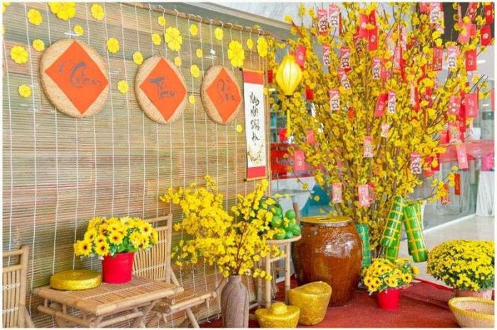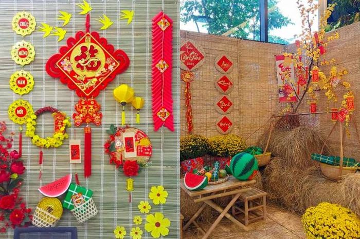 8. Traditional Tet Decorations with Bamboo Mats and Festive Accents