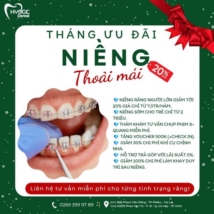 The orthodontic treatments at Hygge Dental Clinic are carried out by highly skilled dental professionals using top-quality materials. The clinic is committed to ensuring the safety and effectiveness of your treatment. In addition, Hygge Dental Clinic focuses on enhancing the patient experience, ensuring you are comfortable and well cared for throughout the entire process. If you are considering orthodontic services, visit Hygge Dental Clinic in Gia Lai for expert advice and professional care. Hygge Dental Clinic promises to give you a beautiful, confident smile.