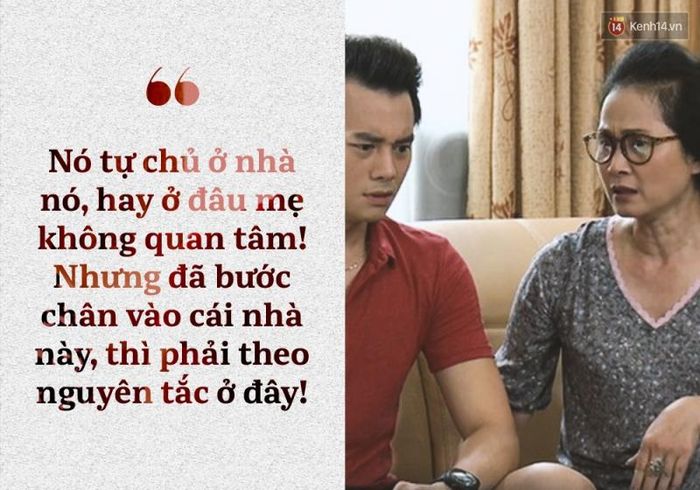 Mrs. Phương always believes that whatever she does is right. Being older and more experienced, she thinks that no matter how capable the daughter-in-law is, she can never outsmart her. According to her, older people are always right, and even if she's wrong, she wouldn't admit it. Because of this mindset, the children in the family, especially the daughter-in-law, feel powerless even if they know the mother-in-law is wrong—they don’t know how to challenge her.