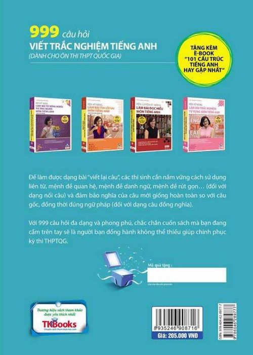 With the desire to help students have good review materials for the writing questions in the National High School Exam in English, Ms. Mai Phuong - a leading English exam expert in Vietnam - has put a lot of effort into the book '999 multiple-choice writing questions in English'. With the diverse knowledge that the book '999 Multiple Choice Writing Questions in English' provides, it will surely help students perfect their knowledge and feel more confident before the upcoming exam.