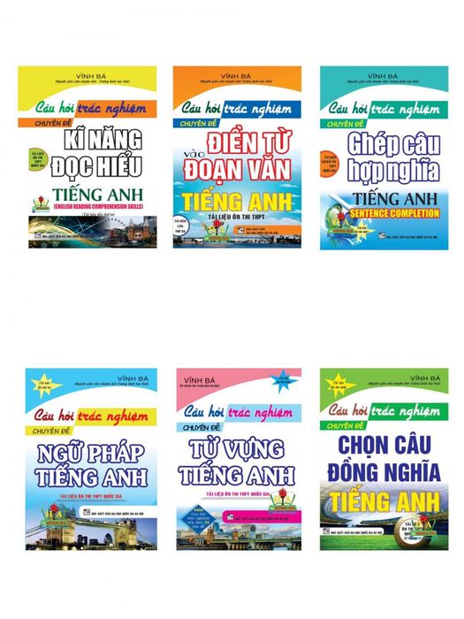 'English Multiple Choice Questions Combo' is a book set compiled by author Vĩnh Bá for 12th-grade students as well as those preparing for the National High School Exam. The books are written with content closely aligned with the educational direction of the Ministry of Education and feature advanced exercises to help students achieve scores of 8, 9, 10.