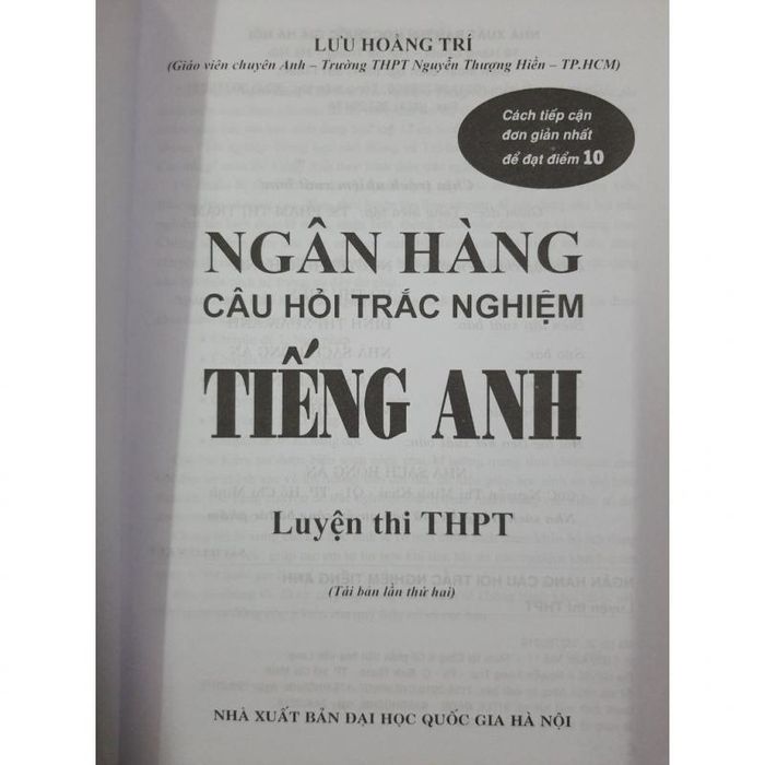 The book 'English Multiple Choice Question Bank', designed for the National High School Exam, is compiled by author Lưu Hoằng Trí according to the latest exam structure issued by the Ministry of Education and Training to help 12th-grade students prepare for the national exam 'High School Graduation and University/College Entrance' in English through objective multiple-choice format.