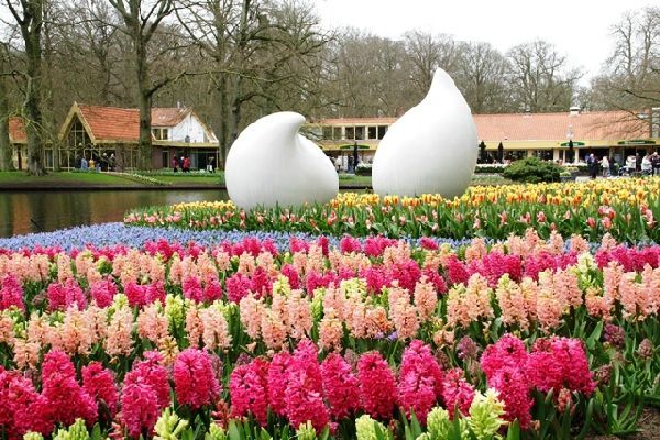 Dating back to the 15th century, this site was originally a garden growing flowers, vegetables, and herbs around a castle. In the local language, it was known as the 'kitchen garden' or Keukenhof. Since 1949, the garden has been designed to offer visitors a completely new way to experience flowers, with the blossoms arranged in stunning themed sections. Keukenhof also hosts the world's largest Tulip Festival, showcasing the stunning creations of passionate horticulturists. It is also a gathering spot for agricultural engineers to meet, exchange knowledge, and display rare flower varieties, demonstrating the skill and intellect of their creators. During the tulip season, the garden is divided into five sections named after Dutch monarchs: Oranje Nassau, Wilhelmina, Juliana, Beatrix, and Willem Alexander. Covering approximately 32 hectares, the park is home to around 4.5 million tulip bulbs from 100 different varieties, along with 2,500 trees and flowers of various types, totaling 7 million flowers of 1,600 different kinds. In the three main pavilions, 30 unique flower and plant species are showcased annually, selected by an expert panel. Of course, the tulips here are considered some of the largest and most beautiful in the world, unmatched anywhere else.