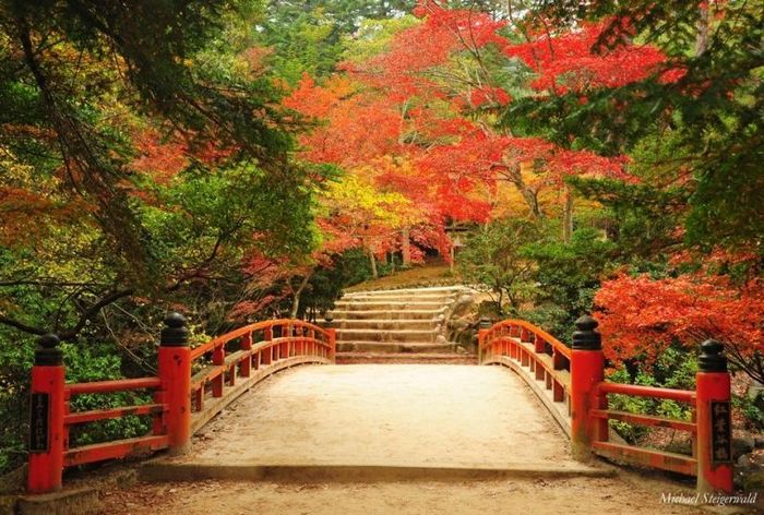 Inside the shrine, visitors can also find a Bugaku and Noh performance stage, showcasing Japan's traditional performing arts. Other notable attractions include the beautiful Sorii Bridge, which arches gracefully over the landscape, and corridors supported by red-painted pillars.