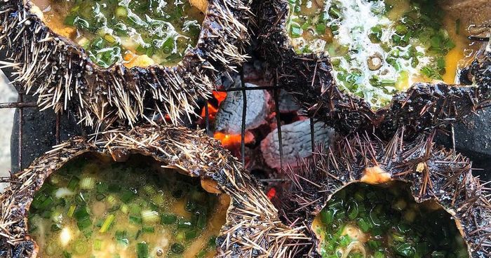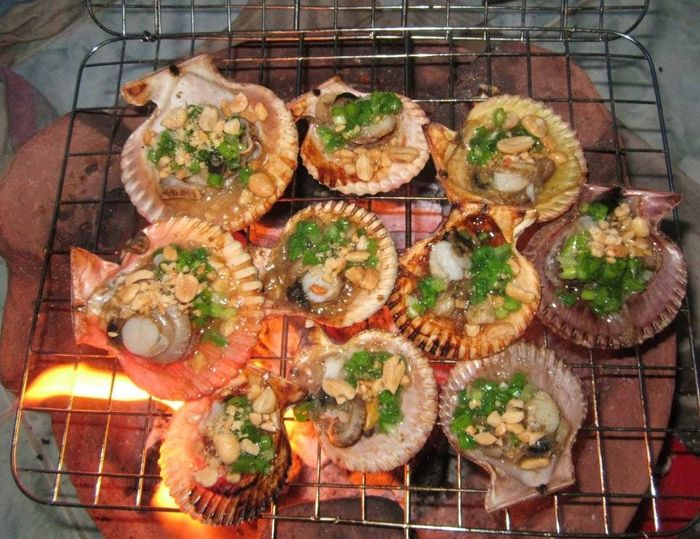 When it comes to eating seafood in Phu Quoc, you must not miss grilled sea cucumber with scallion oil. Just passing by any restaurant preparing this dish, you must stop because the aroma of sea cucumber combined with the fragrance of scallion oil creates an irresistibly delicious flavor. The sea cucumber is trimmed of all sharp spines, split in half, and added with a bit of scallion and oil (or butter for a richer aroma) before grilling. When the temperature is just right, the oil will bubble up, cooking the sea cucumber and scallion. Eating it at this point, the sea cucumber will retain its moisture and sweetness, but if you wait until the sea cucumber with scallion oil turns golden, the dish will be more fragrant but the sea cucumber may be slightly dry. Depending on each person's taste, choose the time to eat sea cucumber, but regardless of when you eat it, grilled sea cucumber with scallion oil still captivates diners with its fragrant, rich, and savory flavor.