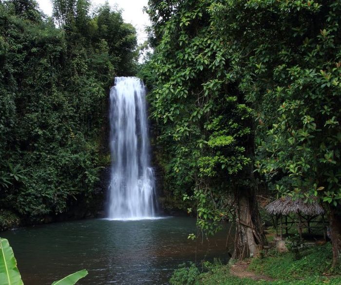 Pa Sỹ Waterfall is located at the heart of the Pa Sỹ ecological-cultural tourism area in Kon Tum, a region often called the "Land of Seven Lakes and Three Waterfalls." The first impression upon arriving here is the pristine beauty and the refreshing air, which is truly breathtaking. It’s hard to find such an enchanting landscape anywhere else in Vietnam. As you venture deeper into the area, nature seems to open up, creating a peaceful atmosphere, with only the sound of birds chirping filling the air. The waterfall cascades straight down with tremendous force, sending water spraying in all directions, creating a mesmerizing white mist.