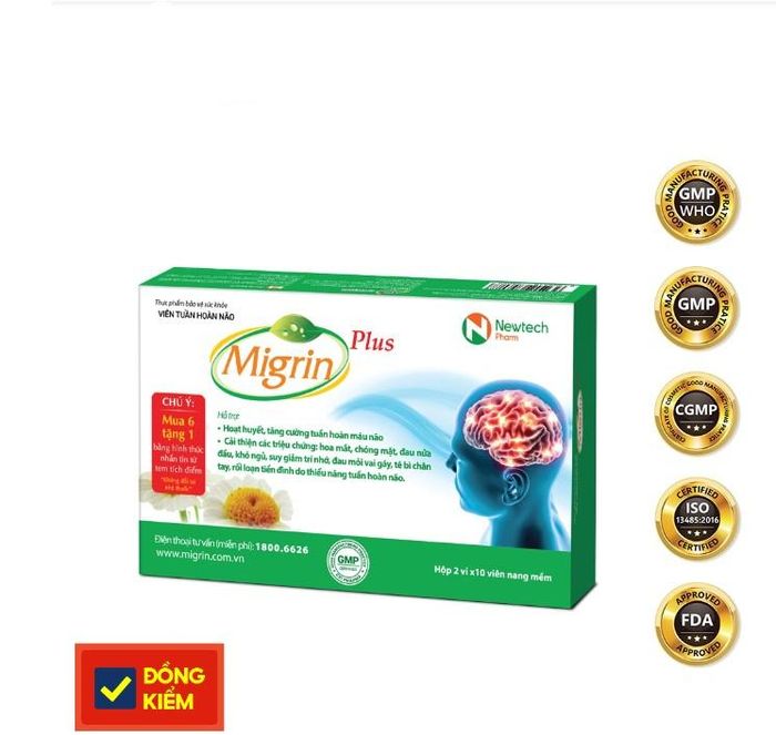 Boost your brain circulation with Migrin Plus by Newtech Pharm, 20 tablets.Experience improved vestibular function with Brain Nourisher Binh Nao Hoan MT Pharco, reducing vestibular disorders - 30 tablets.
