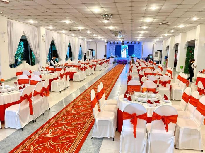 Couples in Thu Duc City can explore Minh Thuy Wedding Banquet Hall on Alexandre De Rhodes Street. With an area of over 5000 m2, the restaurant boasts 3 elegant wedding halls with a capacity of 800 guests and ample parking space.