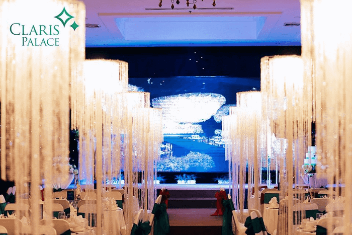 In the bustling district of Thu Duc, the Claris Palace Wedding Conference Center stands out as a shining beacon. The space here is decorated in a very luxurious and spacious manner, featuring 7 banquet halls with a capacity of up to 2000 guests. Furthermore, the highly professional staff is sure to help the groom and bride have a complete wedding, marking the beginning of an extremely happy married life.