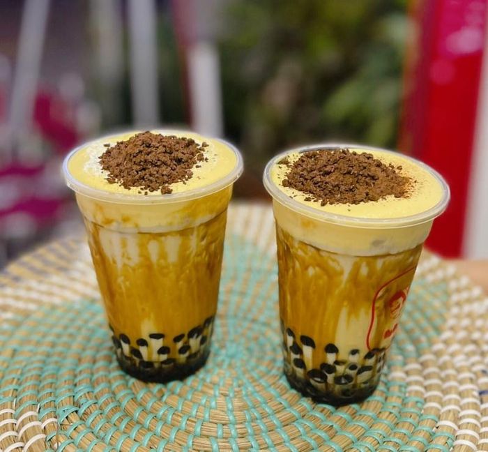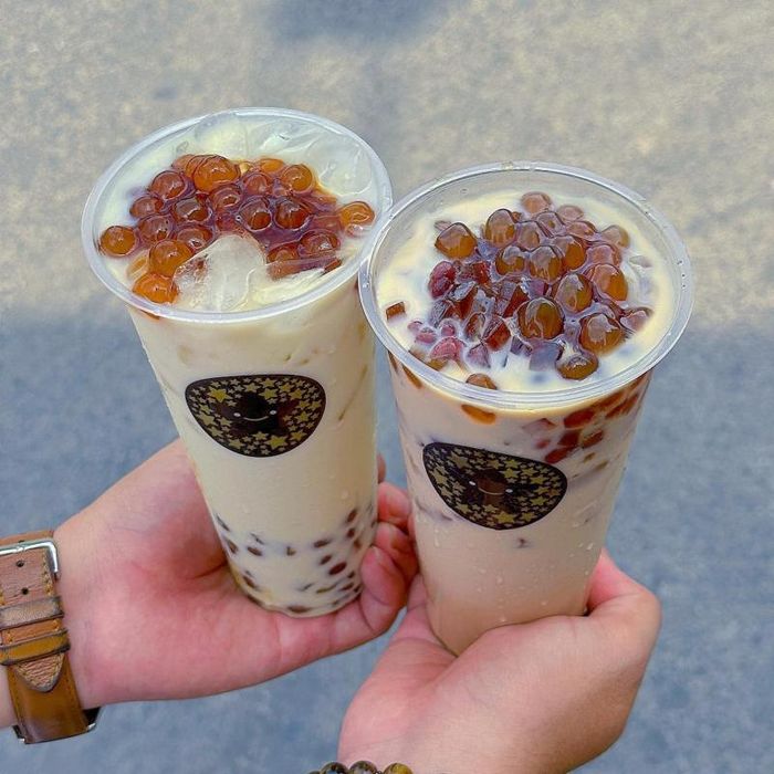 If you're passionate about milk tea, you'll surely recognize the allure of Huangjin Tea's milk teas: creamy milk, strong tea flavor, chewy pearls, and soft jelly. Let's highlight some signature drinks at Huangjin Tea: Sweet potato black tea, grilled milk tea, peach lemon tea, golden pearl milk tea,... and of course, the creamy and sweet flavor of fresh black sugar pearl milk tea. The milky white color of the fresh milk complements the brown swirls of black sugar, creating an irresistibly attractive and stimulating drink. The flavor of Huangjin Tea's fresh black sugar pearl milk tea conquers every milk tea enthusiast, making it the 'best seller' at this Taiwanese milk tea shop.
