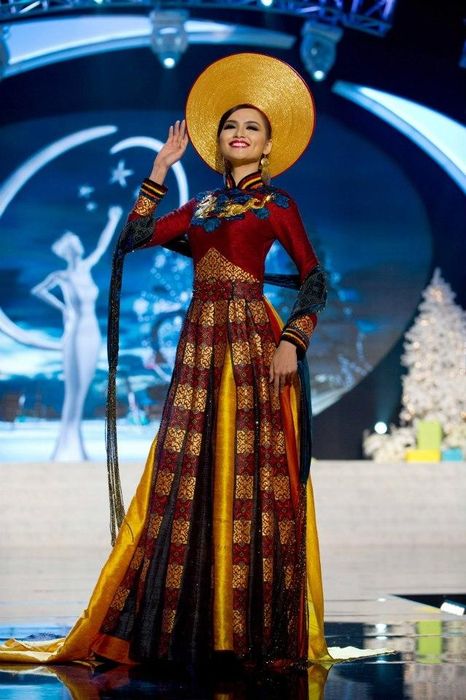 At the 2013 Miss Universe competition, Miss Trương Thị May, Vietnam's representative, was praised for her elegance and style. The national costume featured a striking combination of golden yellow and deep red, adorned with traditional lotus flower patterns.