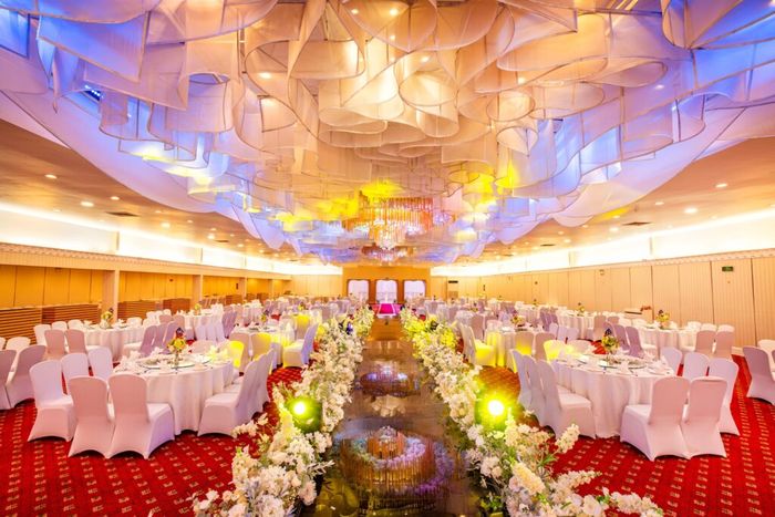 The Hanoi ForeverMark Wedding Restaurant is located in a prime location in Tay Ho district. With a spacious area of 2000m2, the restaurant can accommodate up to 1900 guests. The restaurant has 2 floors. The first floor carries the European vibe - the Paris hall. The Dubai hall on the second floor features an Arabian style, creating a new but cozy and noble feeling. The menu here is very diverse, ranging from traditional to European styles depending on the family's choice.