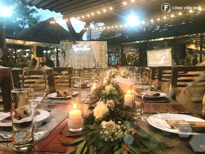 The Small Park Restaurant is dubbed as a forest within Hanoi. With an area of over 5000m2, green trees planted throughout the premises create a cool atmosphere, making the bride and groom feel like they are immersed in nature on their special day. Additionally, the diverse menu with artistic flair captivates every guest. Note that the restaurant often offers many discounts and promotions during the wedding season.