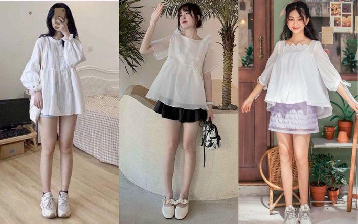 Both edgy and alluring, you can pair a babydoll top with skirt-like shorts for a trendy look favored by many young fashion enthusiasts. Mixing it up with various colors will significantly enhance the overall balance. It's sweet and girly when wearing this outfit. Alternatively, pairing skirt-like shorts and a babydoll top with high heels strikes the perfect balance between edgy and feminine, exuding sophistication and style. With this ensemble, you can confidently attend classes or work.