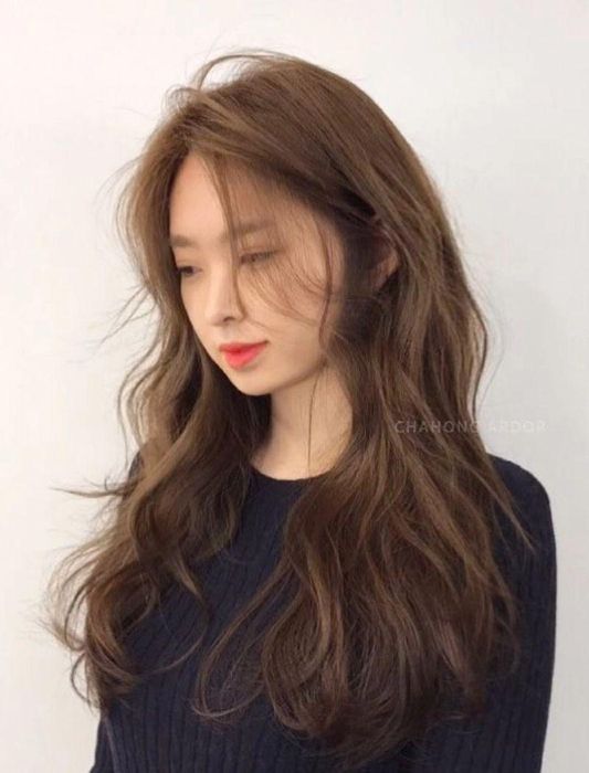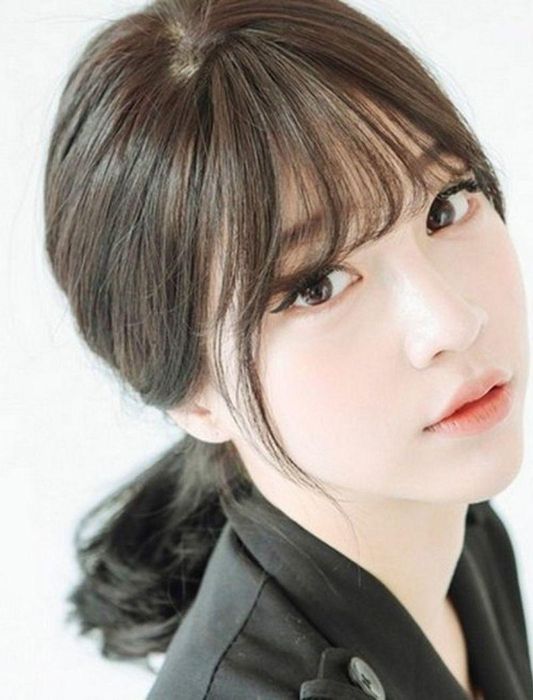 This style looks even more charming when paired with a wispy fringe or soft, side-swept bangs. Adding a light curl to the ends of your hair will give it a delicate, effortlessly chic vibe, just like a Korean hairstyle.