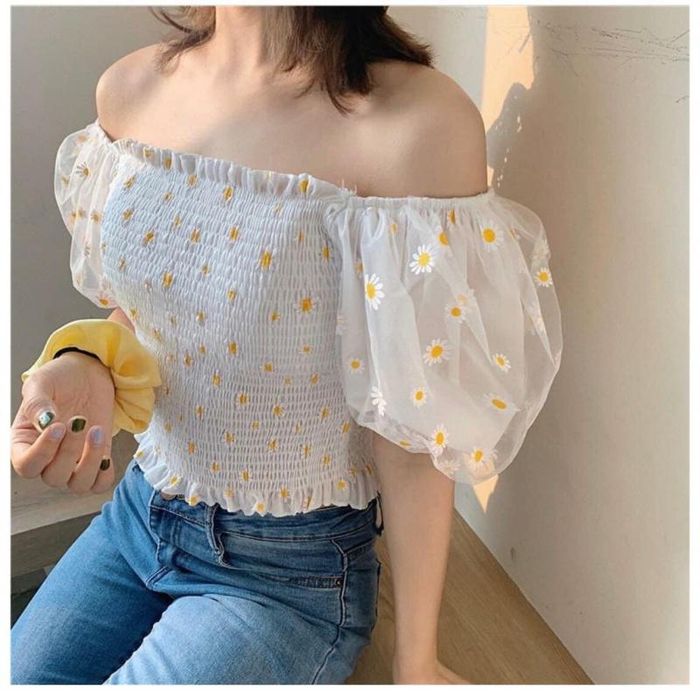 Pairing an off-shoulder top with ripped jeans is another great option you shouldn’t miss. While off-shoulder tops tend to be more feminine and delicate, combining them with knee-ripped jeans adds a touch of edginess and boldness.