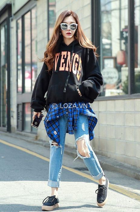 Hoodies come in many colors and patterns, with loose and comfortable fits that pair well with blue, black, or white ripped jeans, giving off a sporty and energetic look. For those who are short on time in the morning, a hoodie is a quick and stylish go-to option.