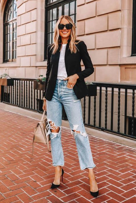 9. Blazer and Ripped Jeans