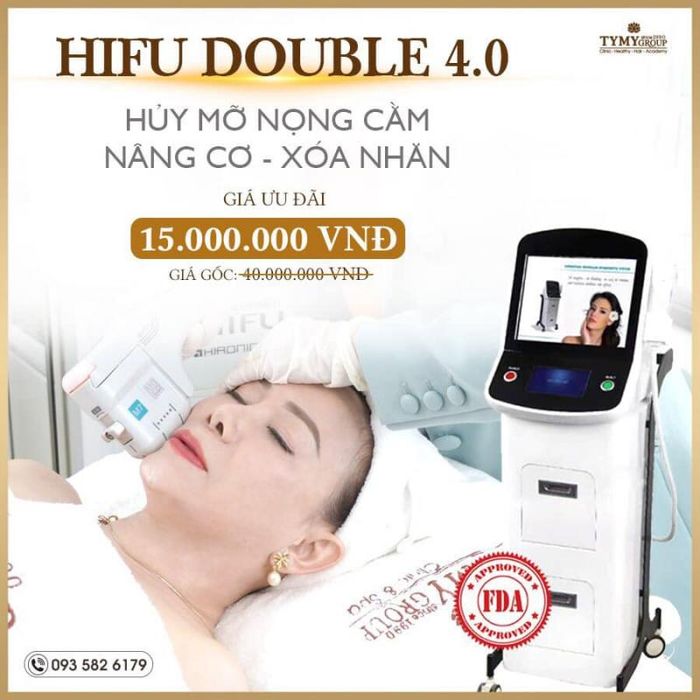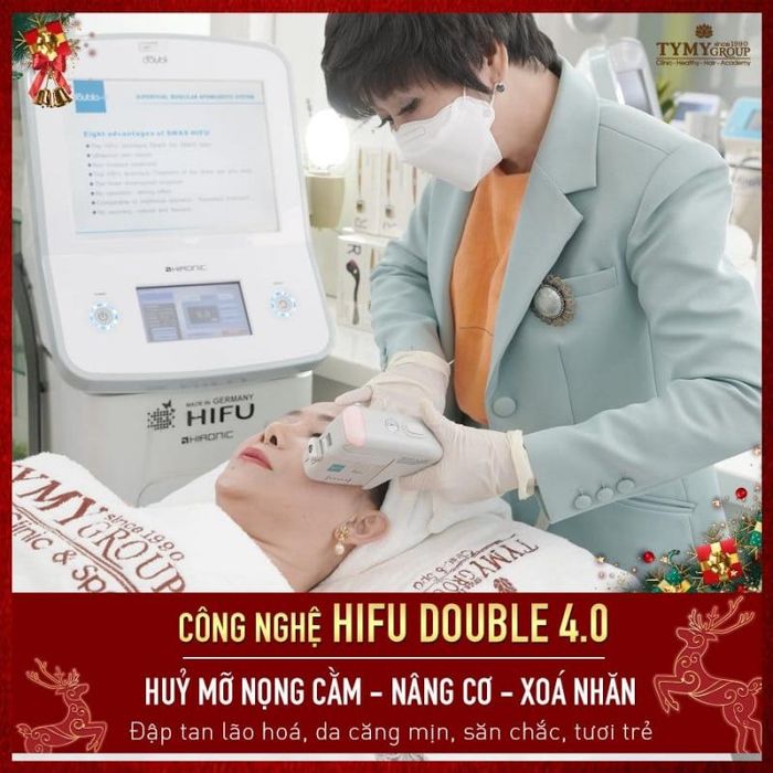 Additionally, TyMy Spa & Beauty Salon offers wrinkle removal and skin tightening services using Hifu Double 4.0 technology. This advanced method uses high-frequency ultrasound waves to penetrate deep into the skin's layers, rejuvenating the skin quickly and effectively, with results lasting up to three years. This non-invasive, high-tech procedure is VIP-level, providing clients with smooth, youthful skin, reduced crow’s feet, diminished under-eye bags, and a radiant complexion that improves over time.